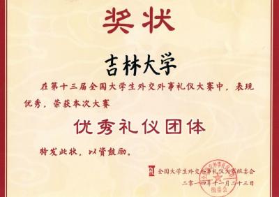 作为文明之国、礼仪之邦,随着中国综合国力不断攀升、国际地位的日益提高,中国青年不仅需要“秉”礼仪之道、与朋友交,更要内“蕴”礼仪之策把握外交脉搏。本届大赛以“秉仪天下,蕴礼四方”为主题,旨在鼓励青年积极思考外交礼仪,扩大公众外交影响力,开拓公众眼界,丰富公众外交知识,加强民族礼仪素养,展现“礼仪之邦”在外交新局面刚柔并济的外交风貌。在今年参加第十三届全国大学生外交外事礼仪大赛的二十九所高校中,吉林大学作为唯一一所东北地区的高校,四位同学与其他高校的参赛同学融洽相处,共同享受着比赛。经过“秉仪天下”、“模拟新闻发言人”、“模拟会议,畅所欲言”等环节的评定,最终我校代表队荣获本次大赛“优秀礼仪团队”殊荣。