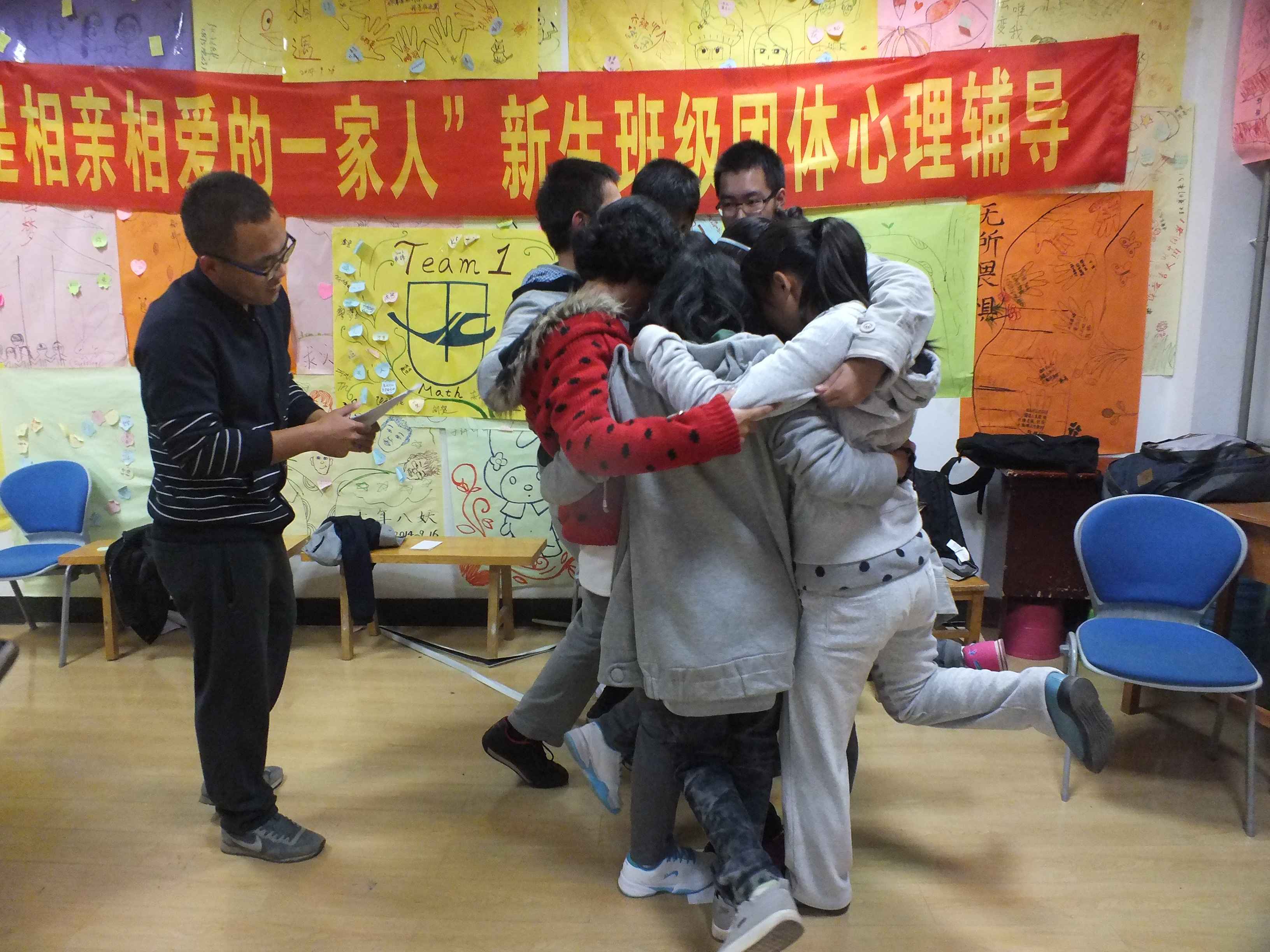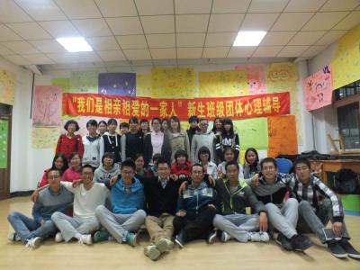 学生会心理健康部于吉林大学中心校区经信教学楼A101室举办了以“我们是相亲相爱的一家人”为主题的新生班级团体心理辅导。2014级新生代理班主任万辰光、彭丽端与081401班、081402班新生参加了此次活动,尹煜(2013级)同学担任了此次活动的主持。