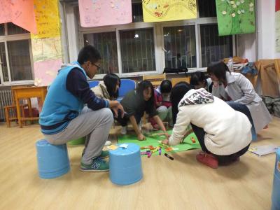 随着活动序幕的拉开,2014级新生进行自我介绍,独特的介绍方式令人耳目一新。接下来,两位代理班主任与新生们一起参加了“一分钟鼓掌”、“信任之旅”、“集体登陆”和“绘制团体树”四个游戏环节。在游戏中,新生们紧密配合,团结一致,共同完成游戏任务。新生们通过一系列的游戏,拉近了彼此间心与心的距离,也体会到了共同努力紧密相依的喜悦。在最后的“绘制团体树”游戏环节中,伴随着《相逢是首歌》的动人旋律,每个小组的成员齐心协力绘制《团体树》,《团体树》画出了新生们心中美好的祈愿,也画出了对彼此真挚的祝福。在整个游戏过程中,现场充满了欢声笑语,整次活动氛围轻松又温馨。