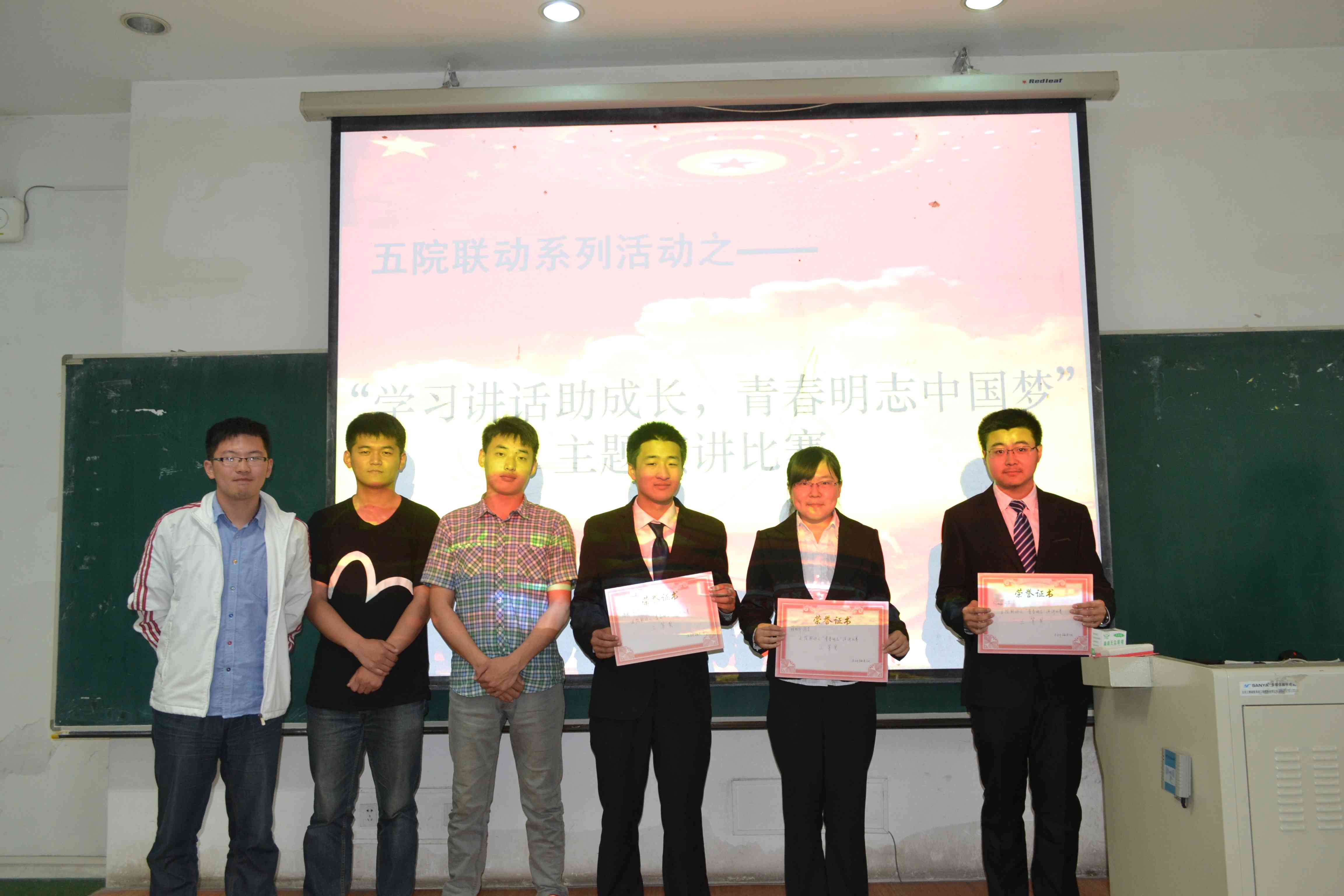 的赵毛铭、魏天一、田蓉三名选手发挥得也相当出色。选手们的精彩表现使得整个比赛精彩纷呈,高潮迭起。经过激烈的竞争,来自法学院的马歌凭借其流畅有力的表达、真挚动人的情感、精神饱满的状态打动了评委和现场观众,最终以94.83分的高分夺得本次演讲比赛的冠军。另有五名同学分获二、三等奖。随后,刘洋、吴兴识等评委嘉宾为获奖选手颁奖并合影留念。