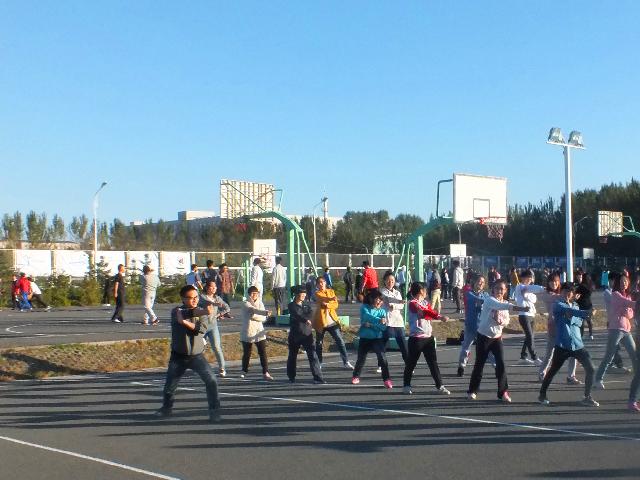 早操健身活动的一大特点。为使早操活动更好地激发大家参与晨练的热情,满足不同兴趣同学的锻炼需求,早操活动共设置了包括晨跑、第九套广播体操、三路长拳、二十四式简化太极拳和趣味运动在内的多项健身内容。