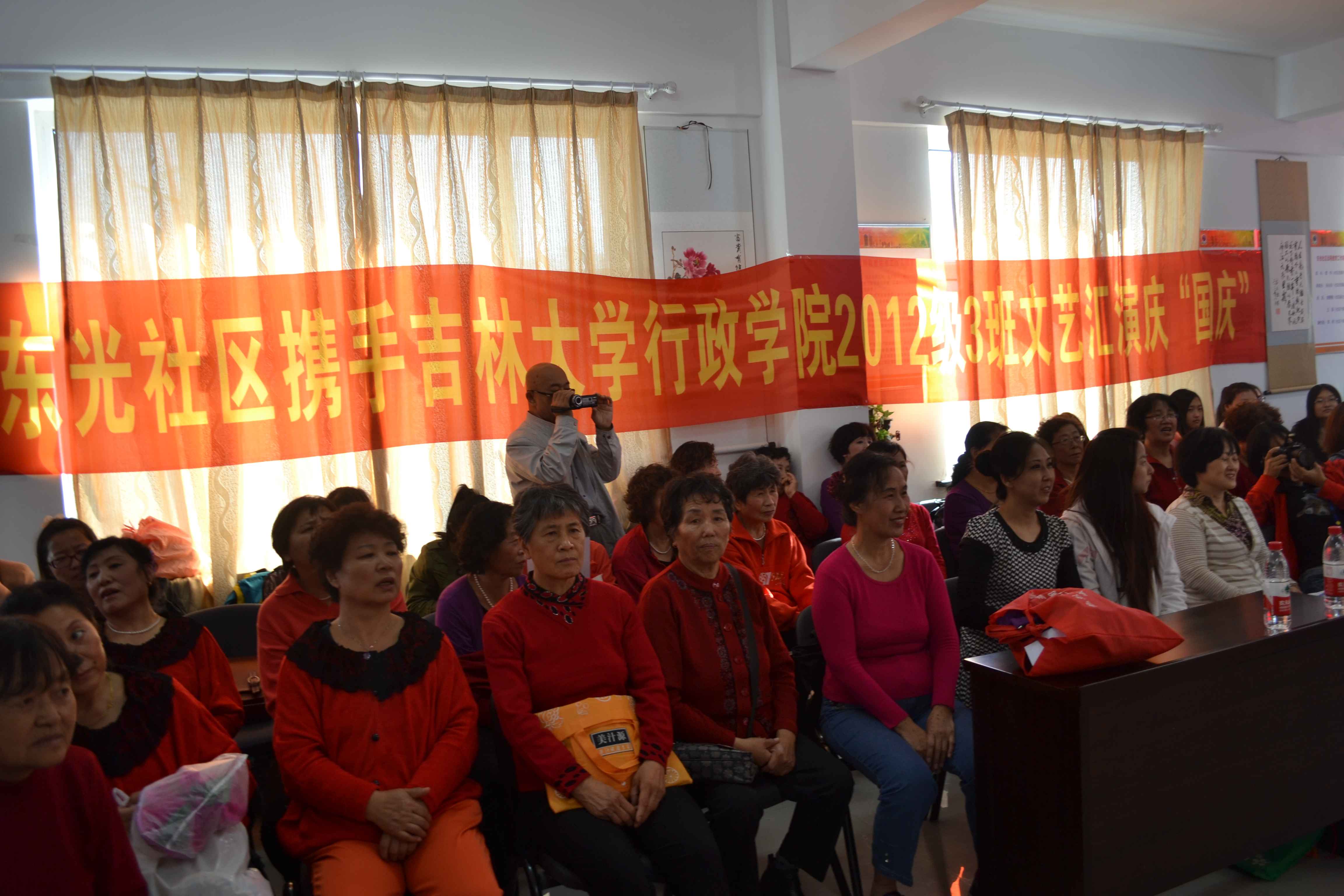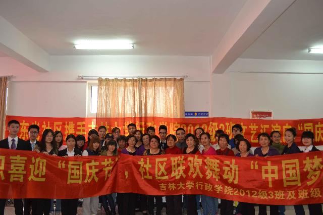 081203班于2013年9月27日与长春市前进街道东光社区携手举办“喜迎国庆节·联欢舞动中国梦”联欢活动。此次活动在东光社区社区服务大楼会议室举行。东光社区党总支书记曹伟,副书记王晶以及东光社区部分群众和在线赌博