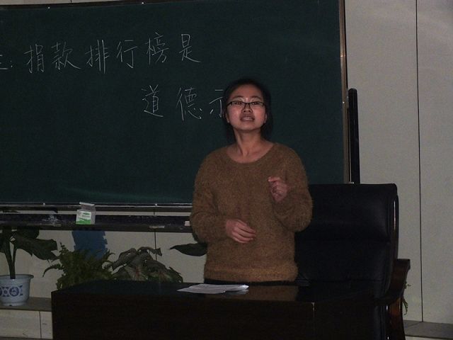 代表队,他们秉持的观点是“捐款排行榜是道德强迫”,正方数学学院代表队的观点是“捐款排行榜是道德示范”。