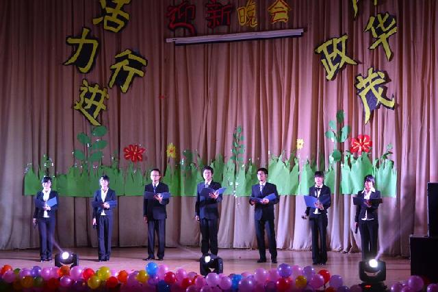 夜幕下的经信报告厅流光溢彩、笑语欢声,弧形舞台经过精心的装饰,烘托出喜庆祥和的浓郁氛围。学院师生联袂登台,为观众奉献了一场艺术盛宴。晚会开始前,会场两侧大屏幕投映出学院领导和教师代表于早先拍摄的温馨祝福。一段活力动感的开场舞蹈过后,院长张贤明教授代表学院致辞,他分别以“祝贺”、“感谢”和“希望”为关键词向新同学表示了热烈的欢迎,在祝贺新同学的同时介绍了学院、学科在国内的重要地位,学术名家、优秀校友以及学院建设发展的光辉历程,感谢新同学为学院注入了新鲜血液与活力,勉励大家分享学院的光荣与梦想,承担继承发扬学院优良传统的使命,不因自己的选择后悔,而要为自己的选择自豪,希望同学们不要迷失在吉大的“大”里,也不要局限在学院的“小”里,嘱咐新同学为使大学四年成为一生中最值得怀念的时光做好三件事:要有健全的人格和高尚的情操,具有公共精神;要培养求知的欲望和思考的状态,不断超越,敢于质疑,善于思考;要勤于锻炼身体,保持健康体魄。在随后的师生互动环节,周光辉教授鼓励行政学子要开阔眼界、不断进步,并将对同学们的美好祝愿寓于一曲《飞吧,鸽子》之中,深情而精彩的演唱赢得了观众们的热烈掌声。最令观众惊喜的是,年事虽高却精神矍铄的宝成关教授登台演唱了一首蒙古民歌——《嘎达梅林》,观众们对宝成关教授高亢嘹亮的歌声报以经久不息的掌声。