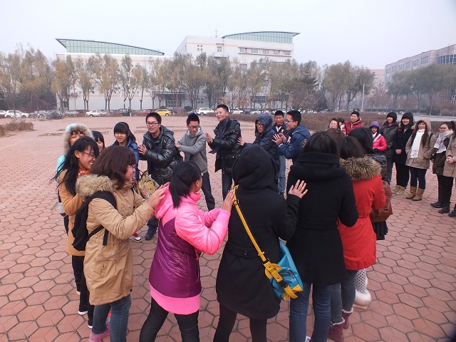 活动中,八十余名学生干部自愿组成“2 Gun队”、“风车队”、“海绵宝宝队”和“探索者队”四支队伍,在素质拓展培训师的悉心指导和工作人员的热情帮助下,进行了“姓名叠罗汉”、“团队设计”、“盲人方阵”、“卓越圈”和“最终热身”五个项目的激烈比拼。比赛现场气氛热烈紧张,同学们全力以赴,队友之间相互合作、相互信任,积极为团队谏言划策,充分体现了同学们的凝聚力和团队精神。“姓名叠罗汉”和“团队设计”环节中,新组建的四支队伍不畏困难、迎难而上,初步形成了团队的默契感和集体感。在“盲人方阵”与“卓越圈”环节中,同学们群策群力,通过进行良好地交流,巧妙地应对规则变化,充分利用现有规则并进行灵活创新,有效地发挥自身优点,提高了团队的整体水平,展现了出色的个人素质与团队的协作能力。“最终热身”环节中,各组队员通过鼓掌、喊口号等方式实现自我激励和相互激励,进一步提高了同学们的团队认同感和归属感。