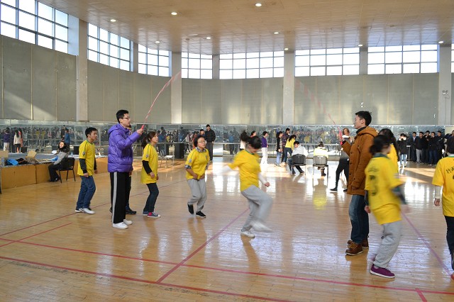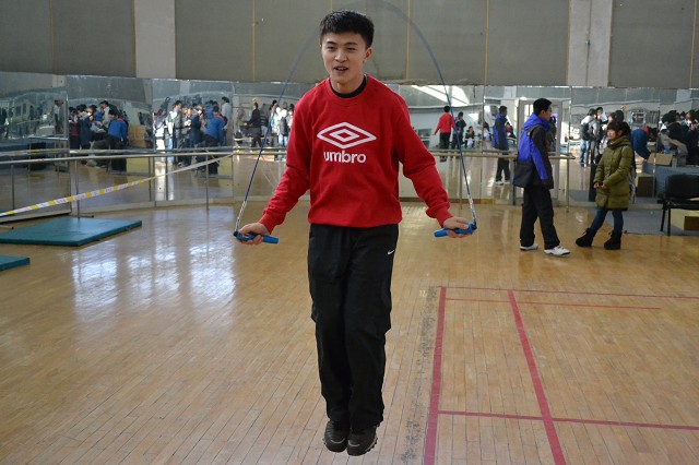 2011级学生丰朴鑫在男子组“30秒双摇”比赛环节中表现突出, 30秒内跳出了71个的好成绩,从众多的参赛选手中脱颖而出,最终勇夺冠军。接力赛中,在线赌博
