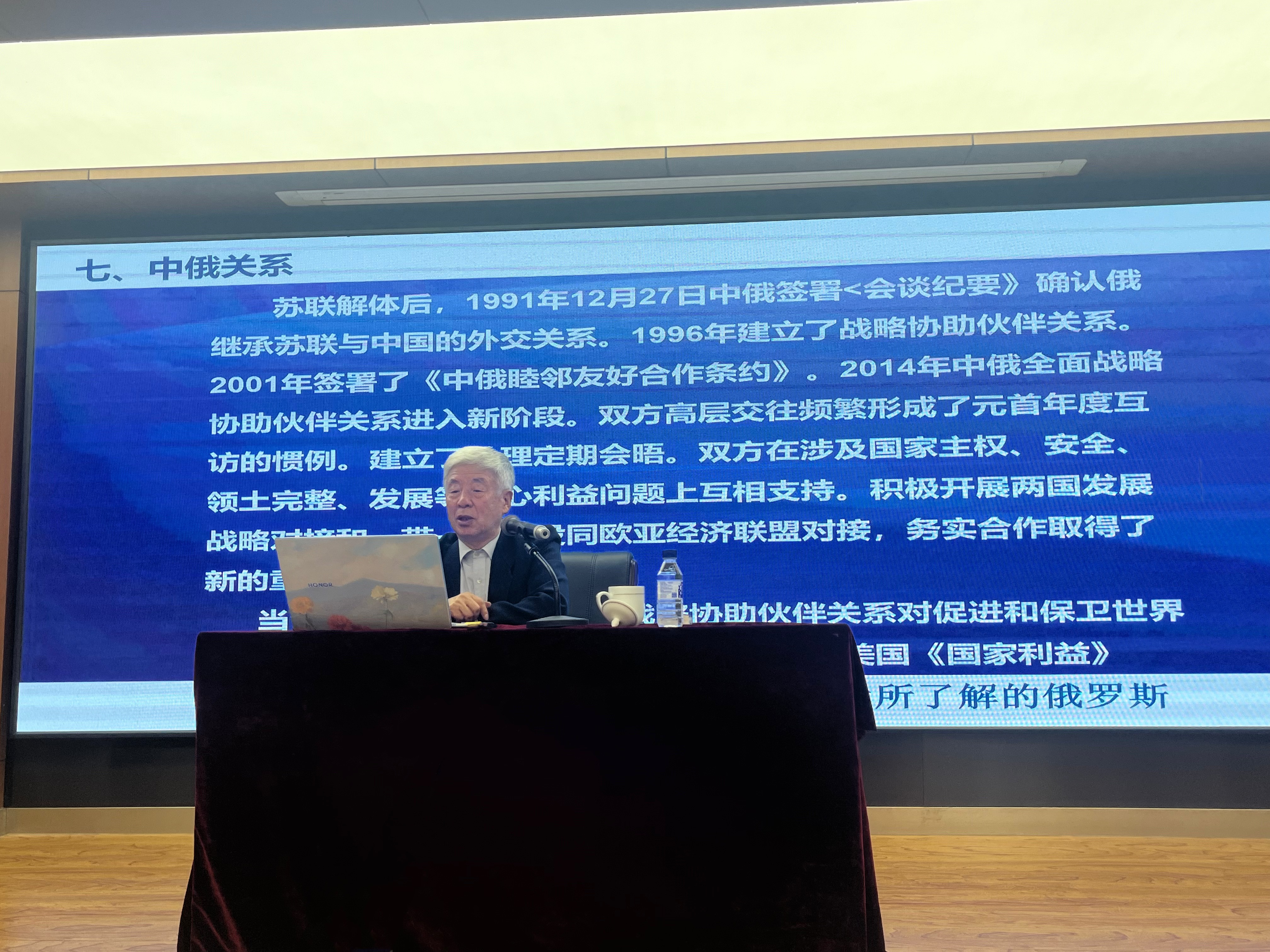 王英以《大国关系——我所了解的俄罗斯》为题,从外交使节和高等教育工作者的双重视角为同学们讲解了俄罗斯的自然资源、社会生活、产业经济、军事国防、高等教育、双边关系、旅游观光、政权更迭等概况,生动再现了驻俄使领馆的难忘往事。王英指出,俄罗斯是中国重要的全面战略协作伙伴,中俄关系对亚太、中欧乃至全世界的政治经济军事动向都有着重大而深远的影响。党的十八大以来,在推进新时代中国特色社会主义事业的伟大征程中,对俄关系乃至我国整体对外工作取得历史性成就、发生历史性变革,根本在于有习近平外交思想的科学指导。习近平外交思想是当代中国马克思主义、二十一世纪马克思主义在对外工作领域的最新理论成果,是中华文化和中国精神的时代精华在对外交往中的集中体现,为中国特色大国外交提供了根本遵循和行动指南。王英结合许多弥足珍贵的罕见影像,将自己的亲身经历娓娓道来,回顾了党和国家领导人对中俄关系的高度重视和对出国师生的关心关爱,肯定了吉林大学对共和国外交事业和留学生培养做出的历史贡献,展示了中国外交人才、国际友人和优秀留学生的时代风采,表达了对当代大学生特别是外国语学院、在线赌博