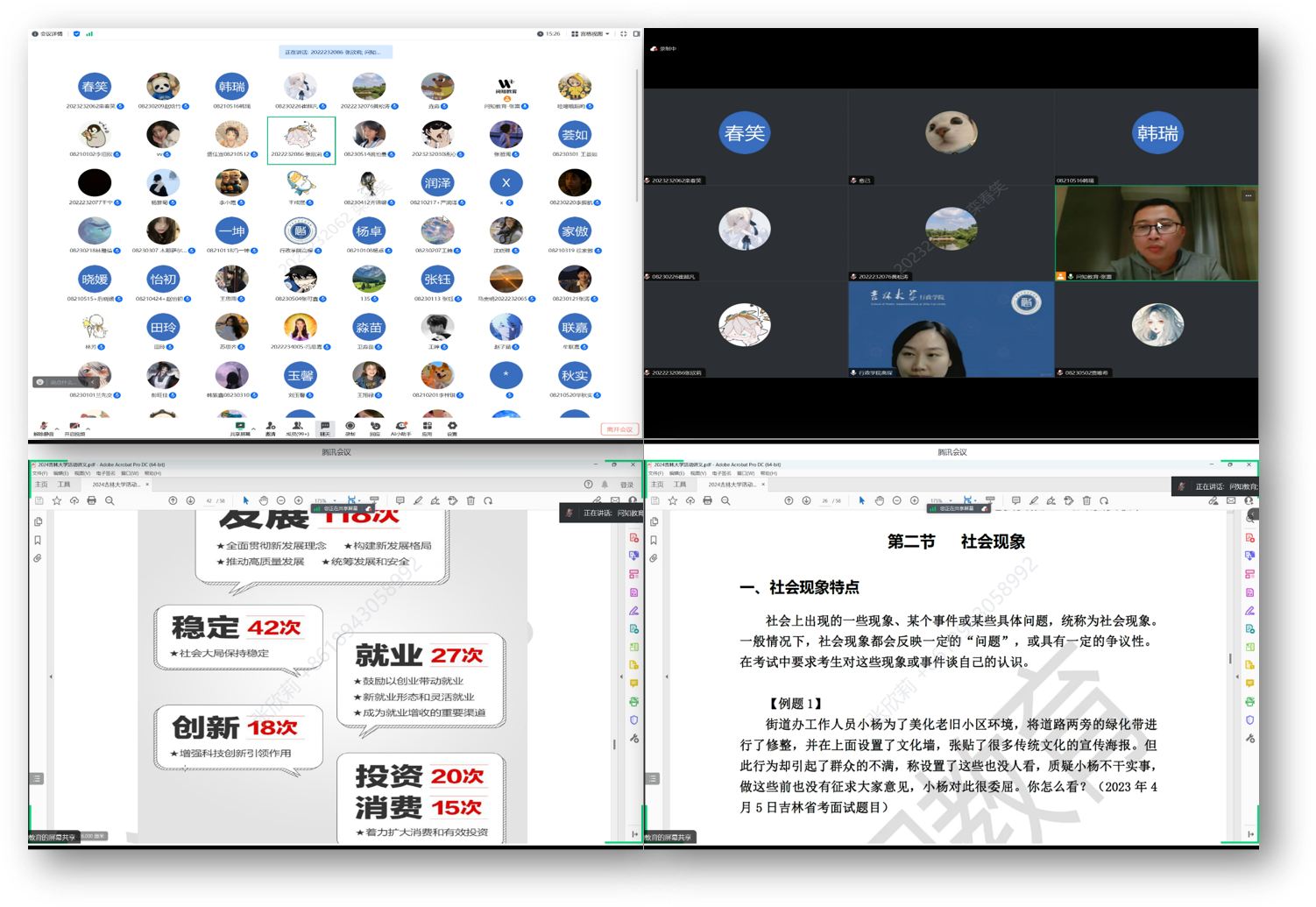 4月7日和4月8日,学院组织了“求职有道,筑梦公考”公考面试知识线上讲座。“问知”教育张雷老师、白绍新老师以吉林省省考面试为例,为同学们分享公考面试的答题技巧与解题思路,提供实用的面试建议。讲座为学院同学们提供了一个学习和交流的平台,也为提升同学们的面试应试能力提供了有力帮助,促进同学们拓宽求职视野,为公考面试积累宝贵经验。