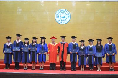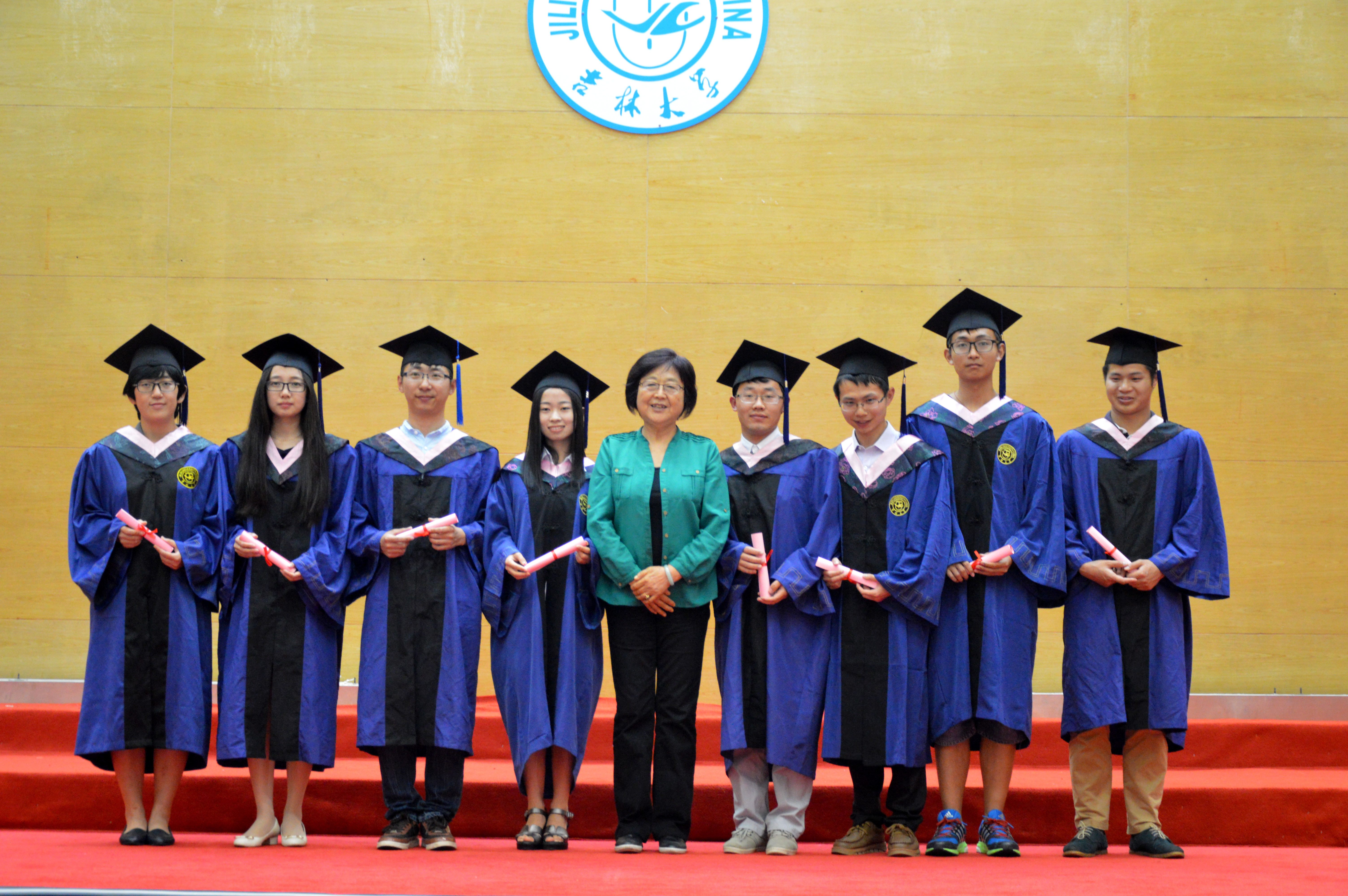 学生代表杨端程(2012级)、孙昕聪(2012级)、赵德昊(2013级)和毕昆(2014级)在致辞中表达了对毕业生的美好祝福。最后,全体成员起立并合唱吉林大学校歌。典礼终将结束,但“人比山高,脚比路长,跨越新世纪去迎接轰响的红太阳”的精神将永远伴随他们前行。