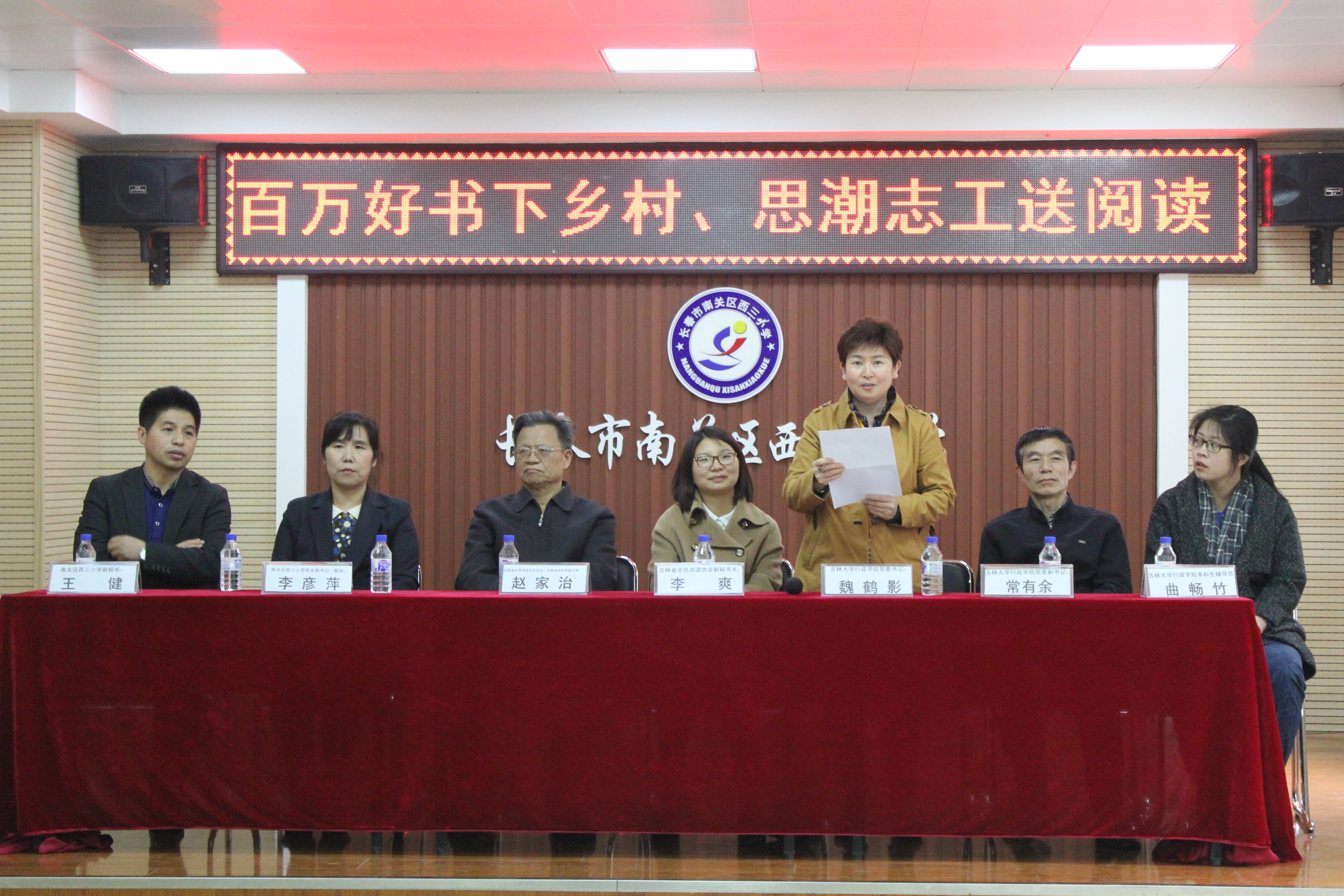 党委书记魏鹤影发表了对孩子们的讲话。她主要讲到,书籍是育德的工具,同学们要以书为友,以书为鉴,培养良好的学习习惯。最后,吉林省全民阅读协会会长赵家治发表讲话,他对西三小学多年来的教学成果表示肯定,希望校领导师生保持对校园文化建设的重视,并向孩子们传达了“知学、好学、乐学、博学”的希冀。讲话结束后,老师代表和学生代表们开展了读书心得交流会,学生们或讲述故事中的道理,或分享对古诗的思考;老师则谈了自己读书多年的经验和积累,希望大家能以书为伴,砥砺前行。