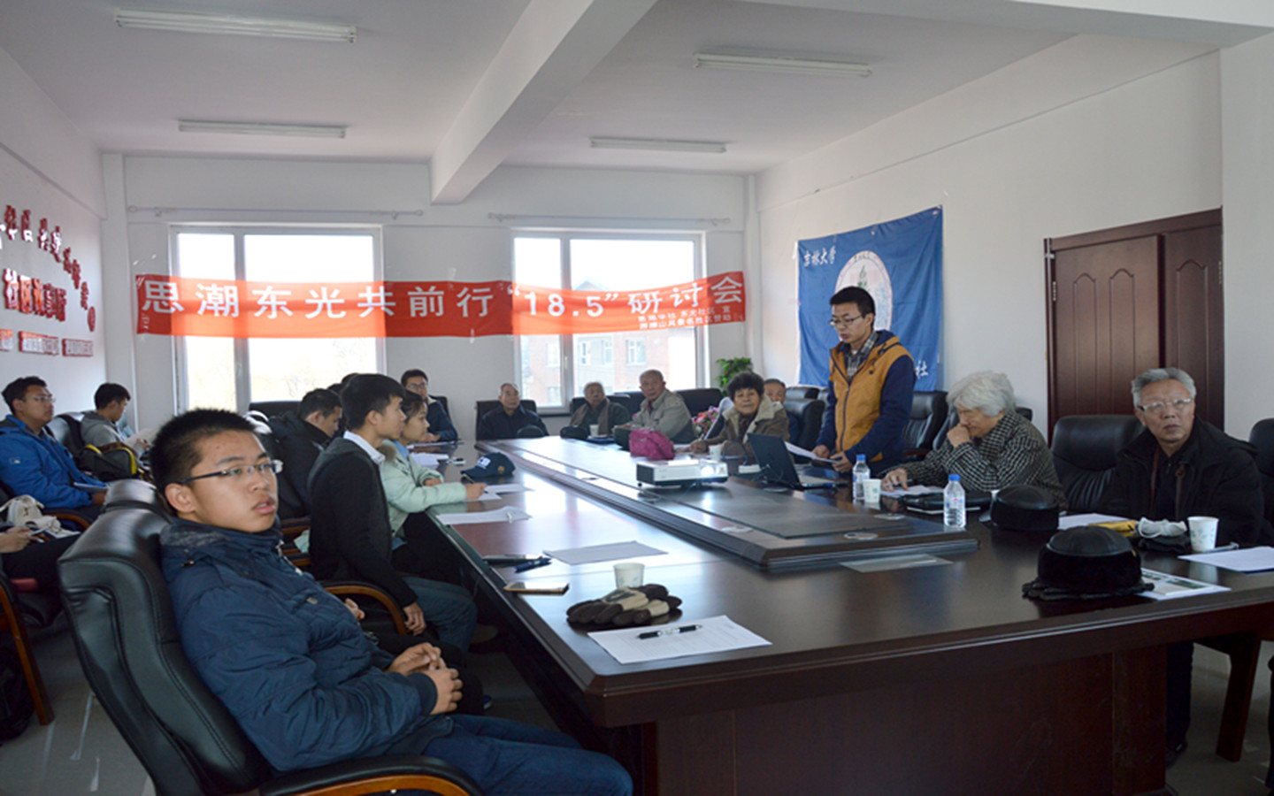 部分学生以及东光社区部分退休党员参加了此次研讨会。思潮学社社长王佳佳(2014级)主持了研讨会。
