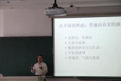 在接下来的专业素质教育中,殷冬水副院长与2015级新生进行了交流。他说到,新生在初到大学的时候,难免会焦虑,这是一种普遍而真实的感受。因此,如何完成从“考大学”到“读大学”的转变,这是新生应该思考的问题。他认为,一名大学生应该同时具有强健的体魄和强大的精神,实现全面发展。殷冬水结合自己的人生经历,与新生们分享了“大学应做的五件事”,鼓励新生找到自己前进的方向,并为之不懈奋斗。殷冬水副院长幽默风趣却又意蕴深刻的话语,让在座新生欢笑的同时也受益匪浅。