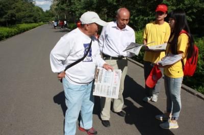 081403班同学在桂林路和南湖公园举办了义卖报纸活动。