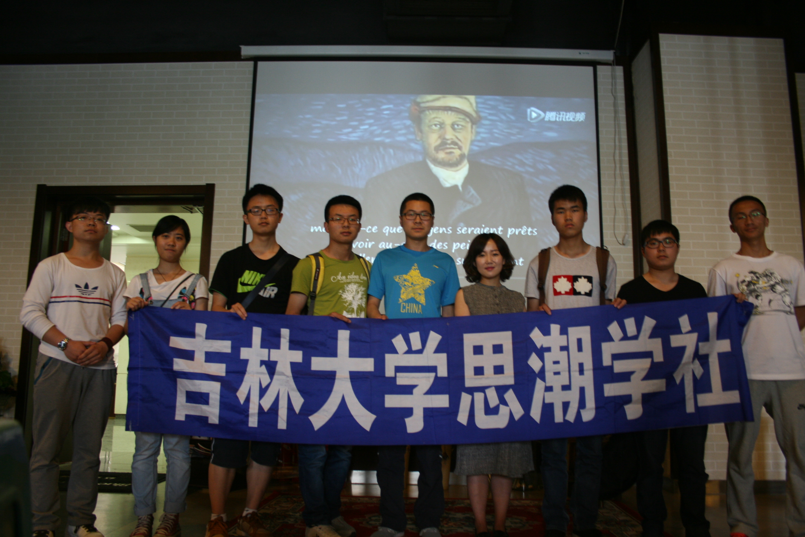 在参观结束后,同学们应邀参加了吉林省全民阅读协会《花开不败——永远的梵高》“悦读会”。80后美女作家周帆携同是作家的夏墨等好友向同学们介绍了自己的创作经历、作品以及自己创作的心路旅程。“悦读会”还邀请了专业美术老师深入解读梵高的代表画作,欣赏其中不可言喻的美;到场嘉宾现场吉他弹唱《Vincent》、《Hotel Califonia》更将本次活动推向了高潮。最后的提问环节,同学们的踊跃发言反映了思潮成员深厚的文化底蕴。时间很快过去,同学们合影留念,结束了此次活动。