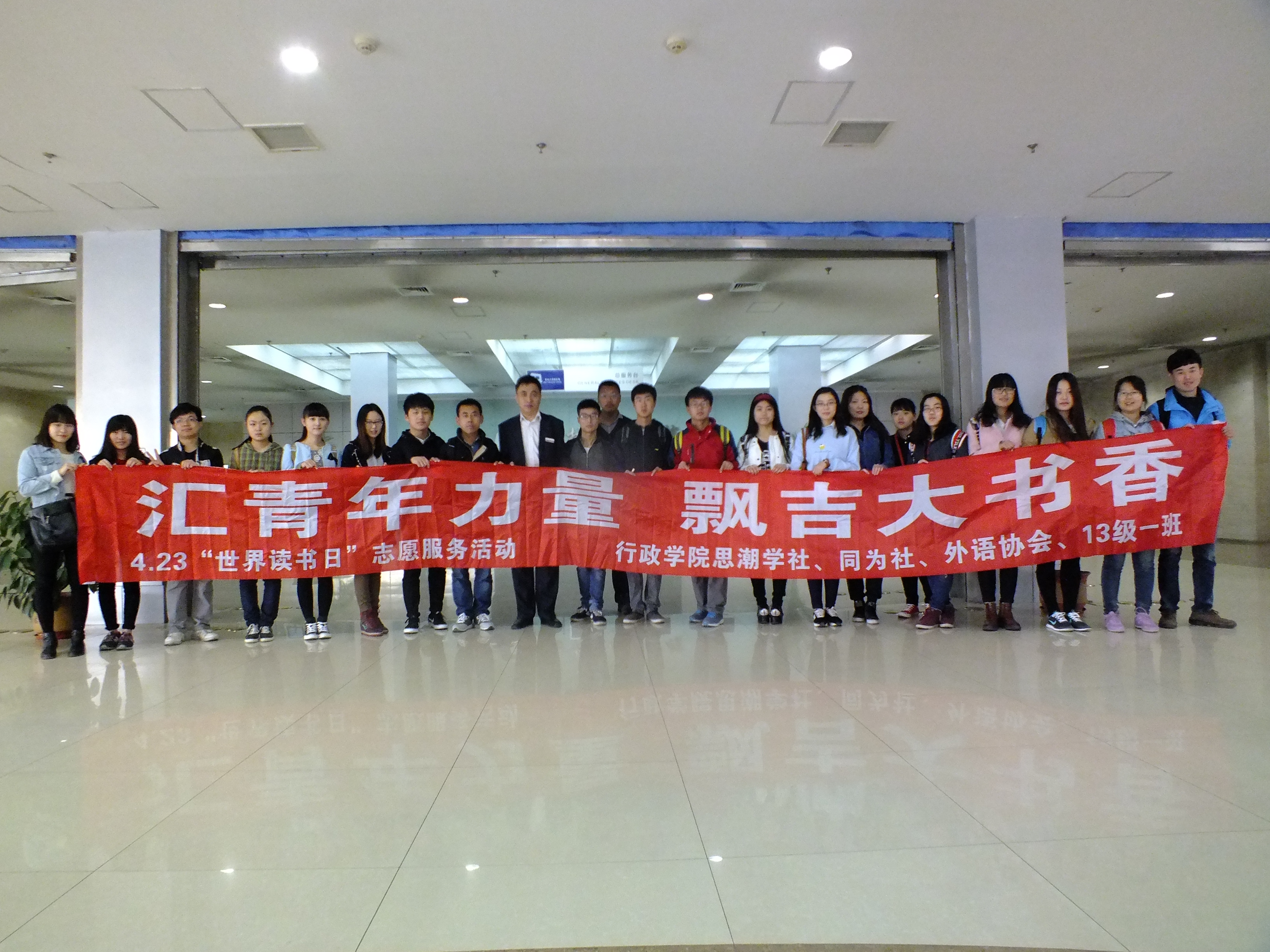 在世界读书日到来之际,为了宣扬读书理念,倡导更多同学培养读书的好习惯,4月23日,吉林大学思潮学社联合同为社、行政外协,以及在线赌博