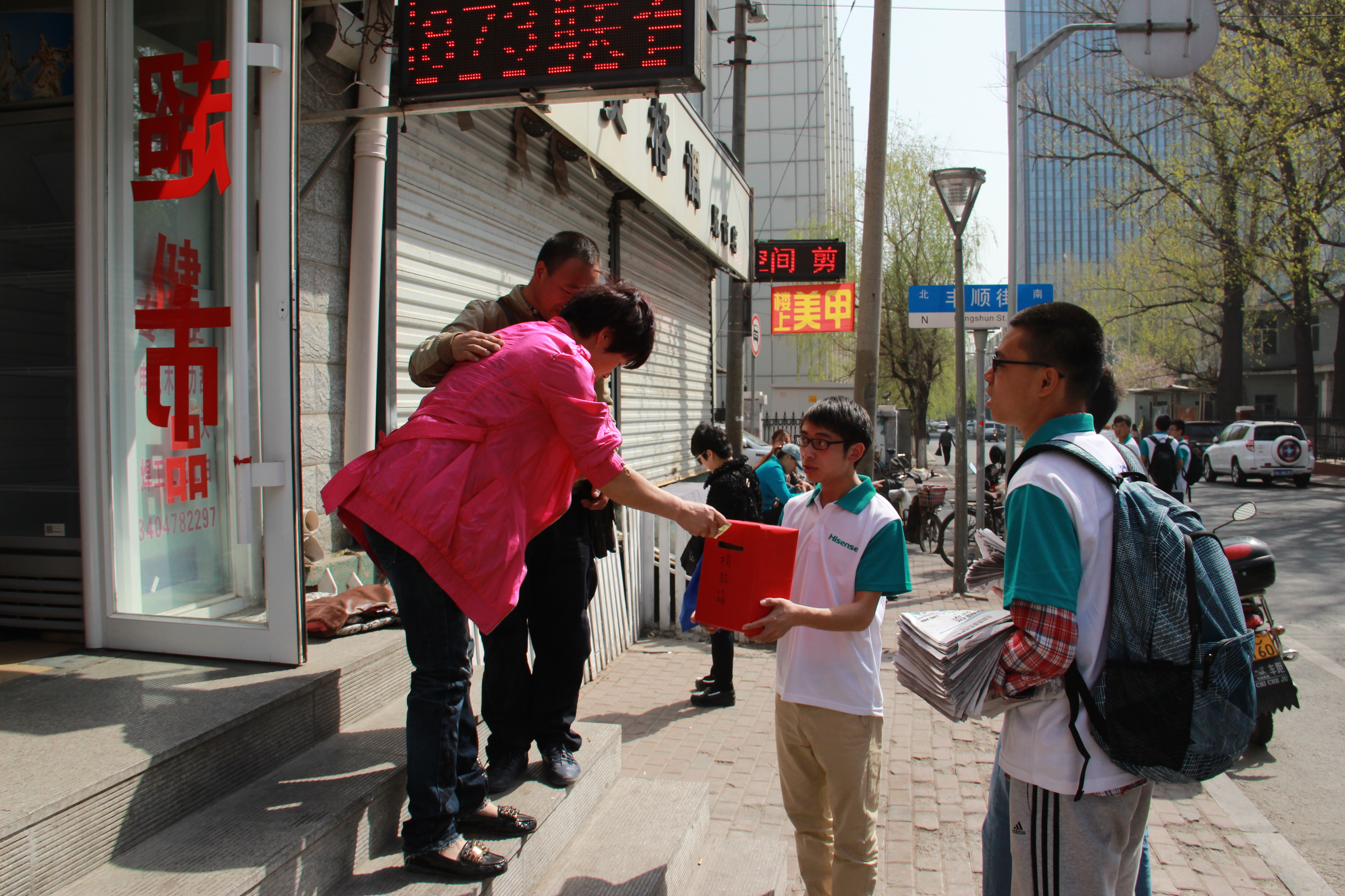 081402班在学院团委的支持下,于4月26日组织全班同学在桂林路义卖报纸,为吉林大学“育苗”支教募集善款。