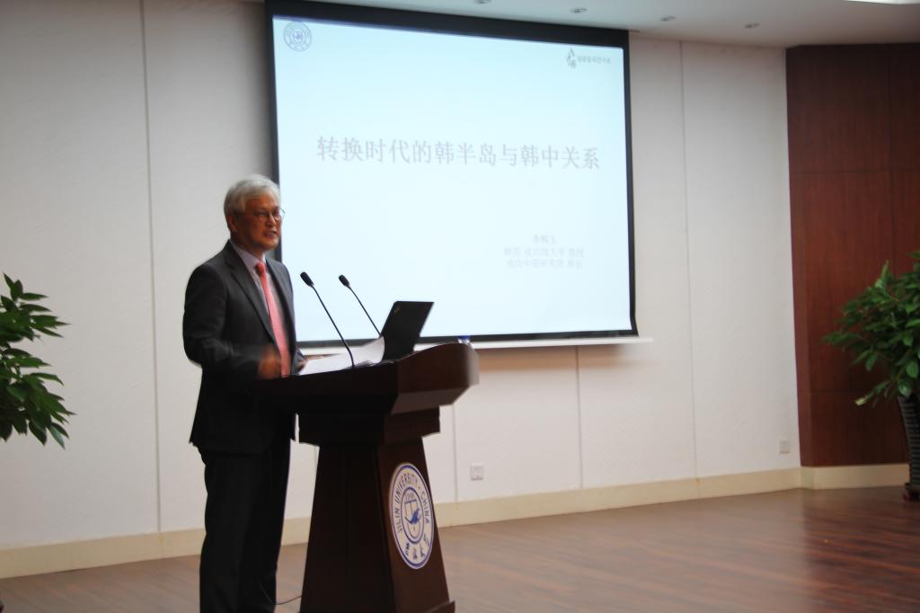、吉林大学社会科学处、吉林大学廉政研究与教育中心共同举办的为纪念改革开放四十周年哲学社会科学名家讲座在匡亚明第一会议室如期举行。韩国成均馆大学成均中国研究所所长李熙玉教授为大家带来了题为“转折时期的韩半岛秩序与韩中关系”的讲座。